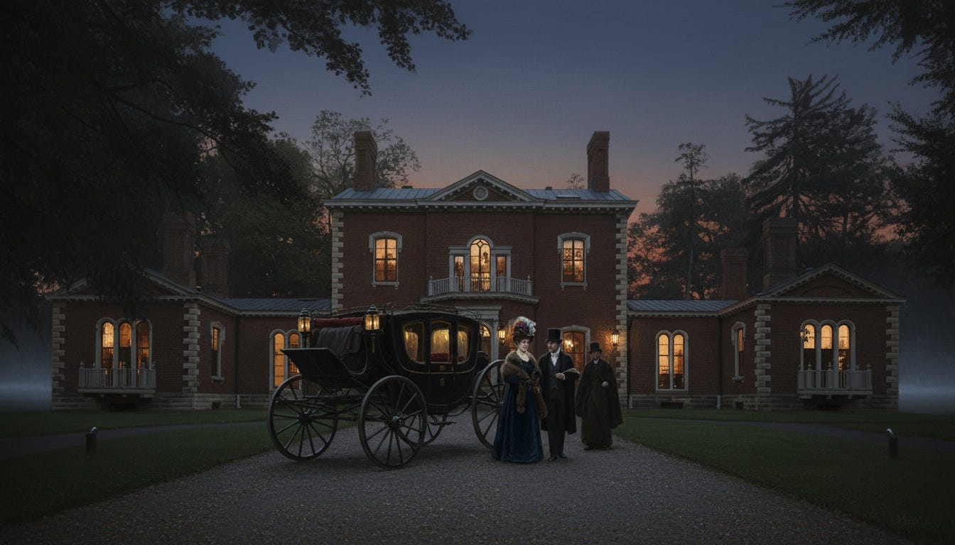 Reds and oranges paint a late summer sky over Lexington, Kentucky. Under the ash trees lining both sides of a recently raked gravel drive, an athletic, dark-skinned man jumps down from the driver’s seat of a Landau carriage. He moves with a grace that belies his 43 years. In two fluid moves he lowers the left side step for the passengers inside. The tricky twilight shadows hide a wry smile. His strong, callused hand reaches up to help Mistress Blakeney down from the enclosed passenger’s compartment.