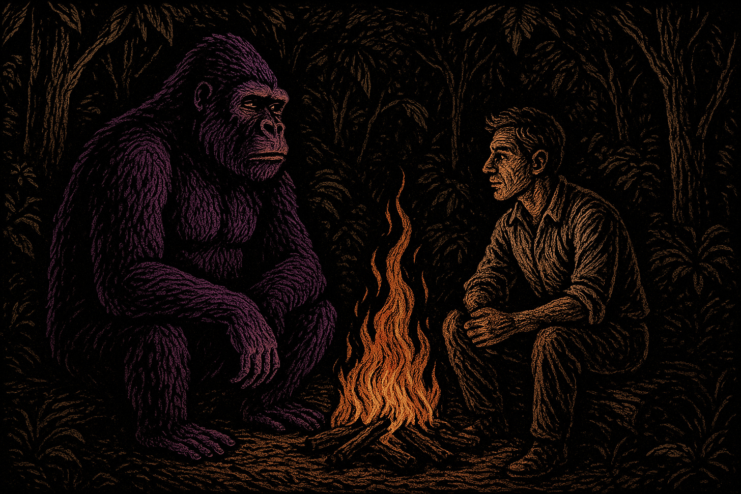 A PhD in zoology makes sitting across a campfire from an 8-foot-tall, purple primate a dream come true. But it doesn't equip you with snappy conversation skills.